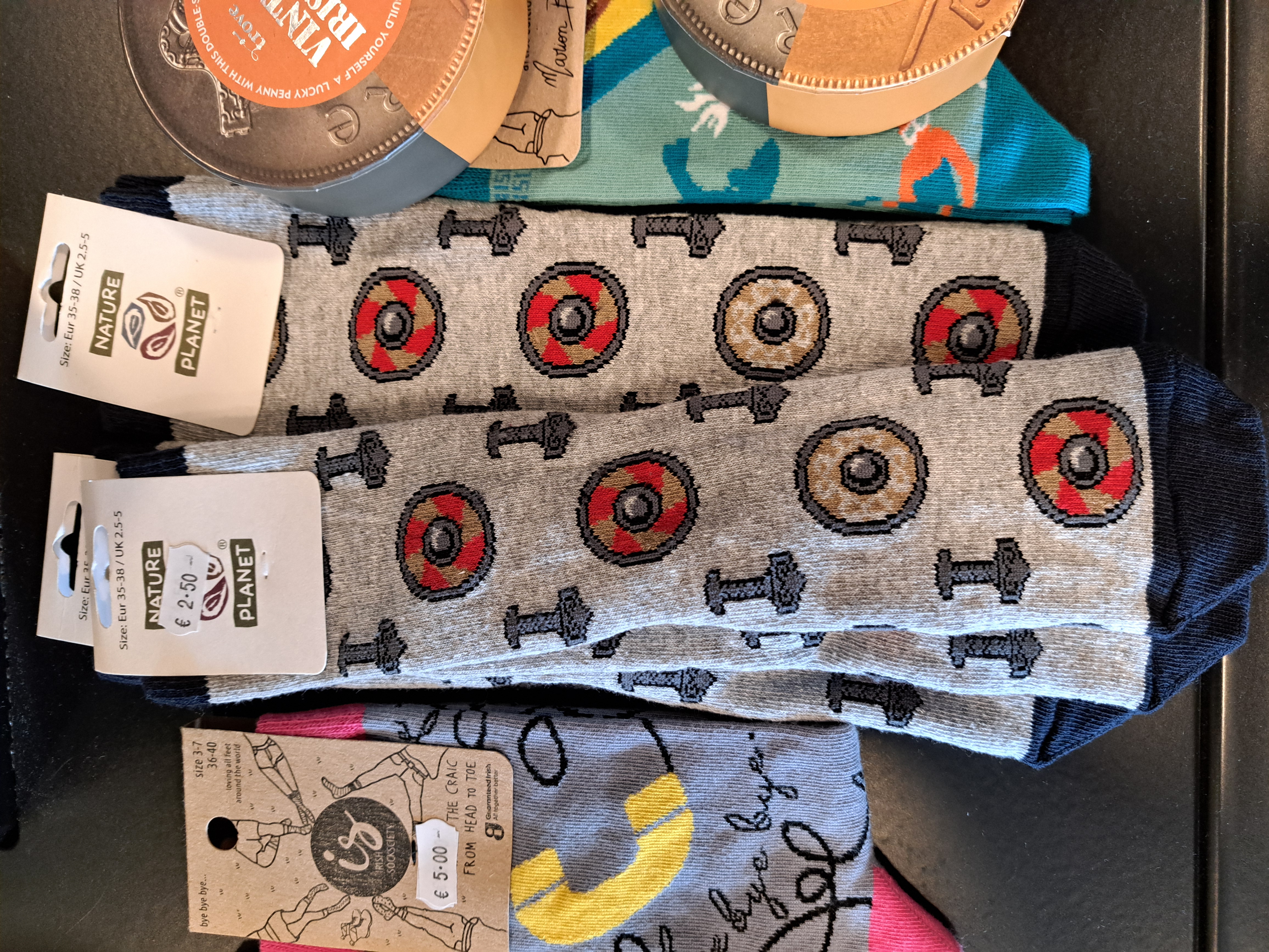 Shield and Thor's hammer socks on sale in Waterford Treasures Museum